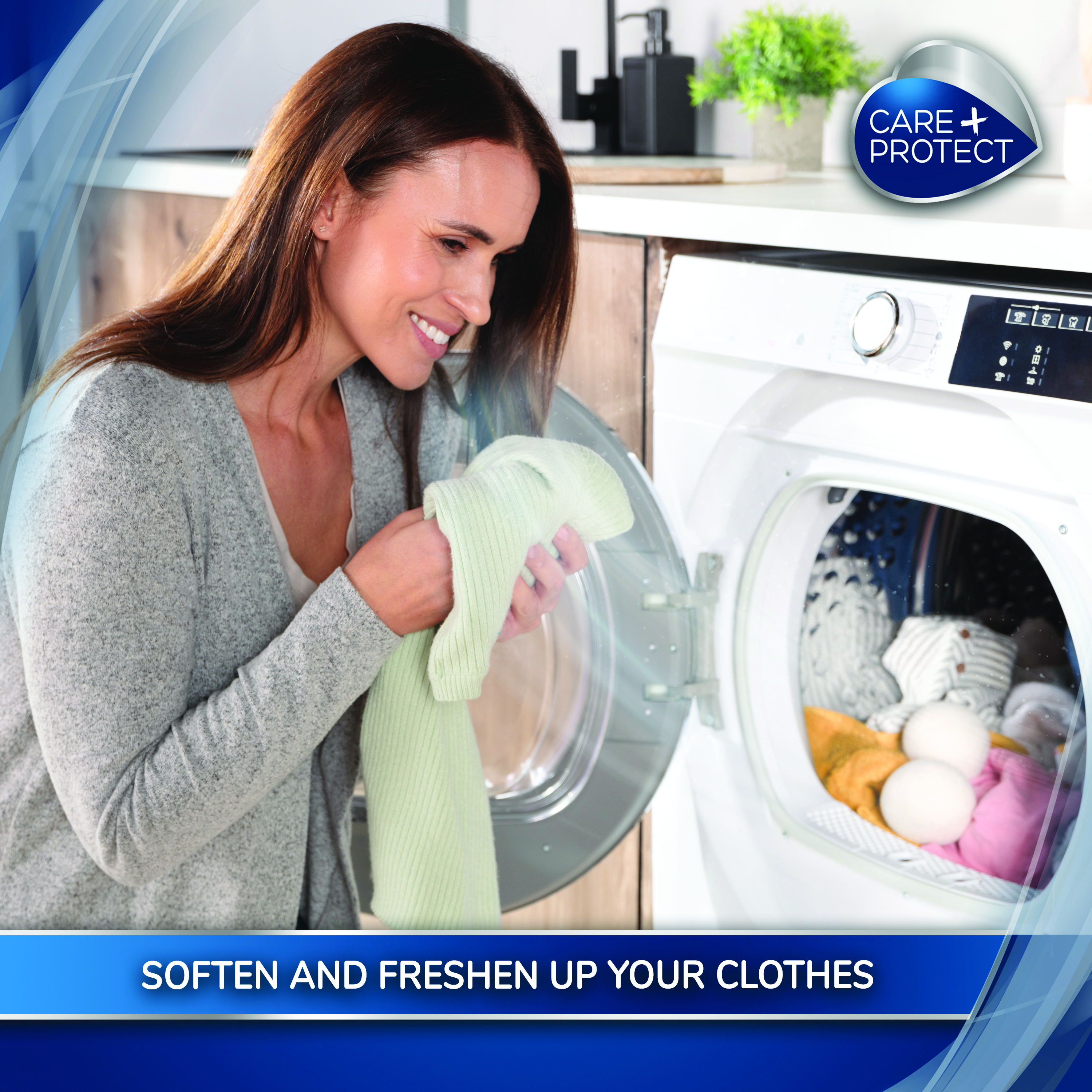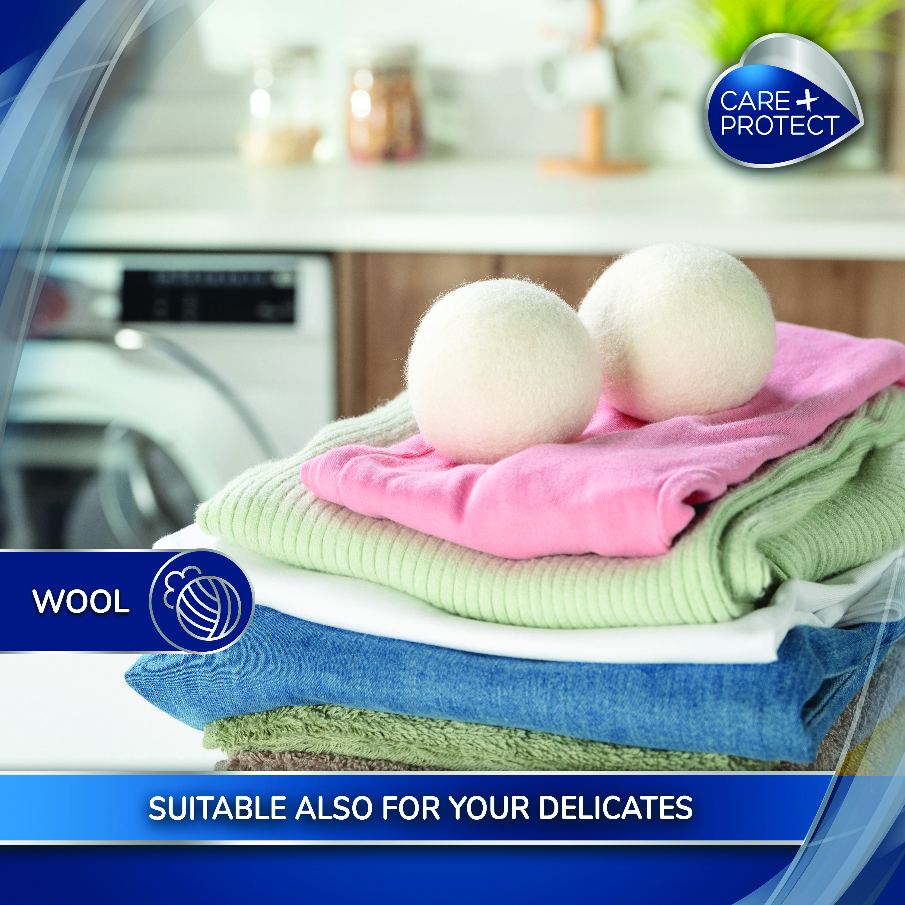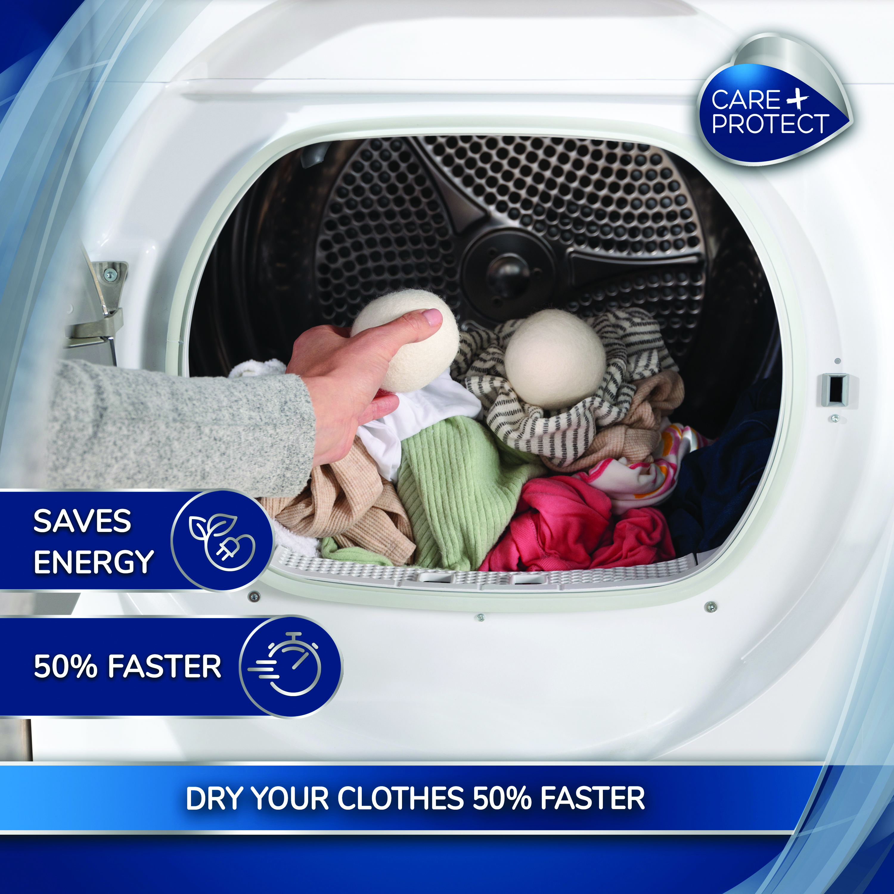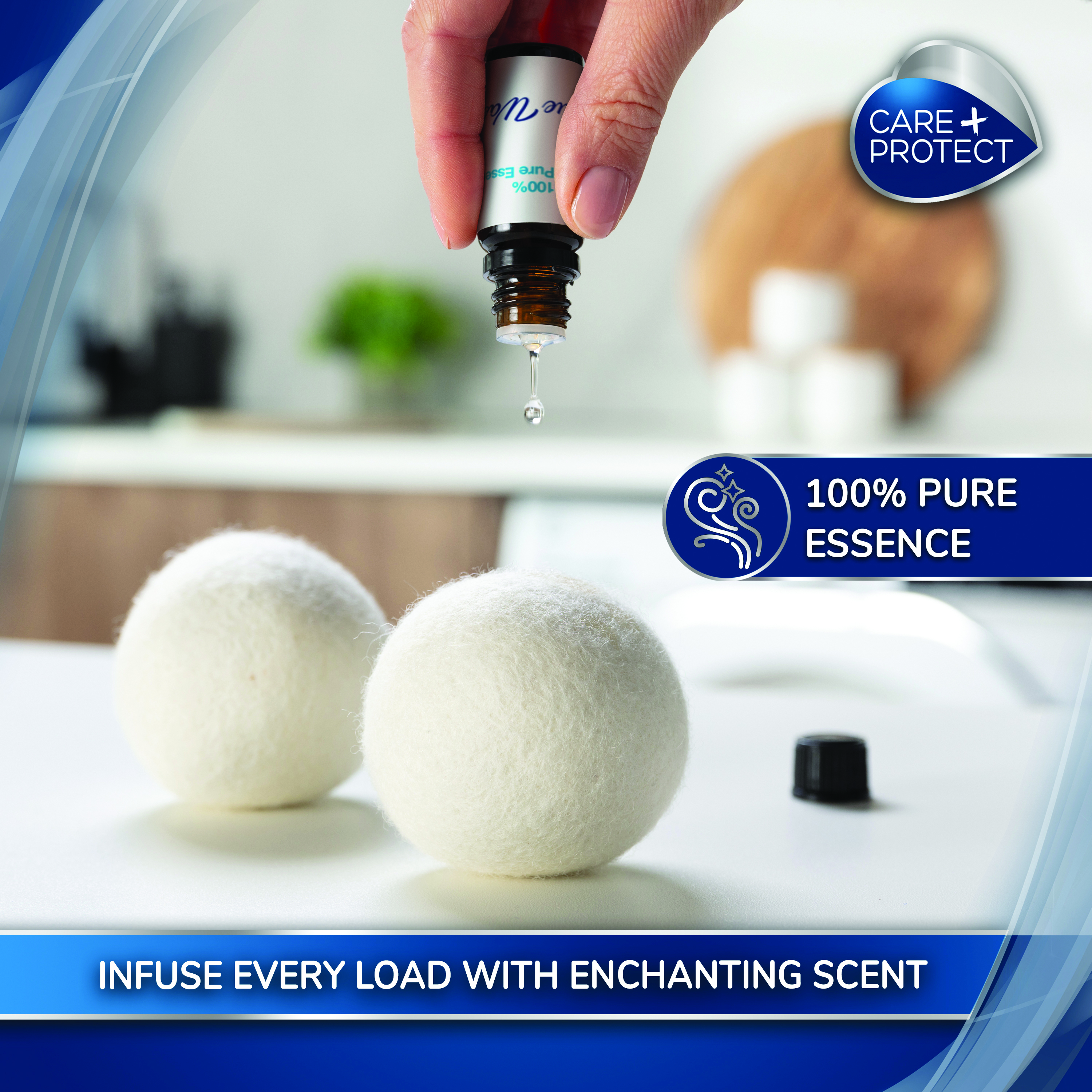 Care+Protect Wool Dryer Balls, crafted from 100% natural wool, not only reduce drying time by an impressive 50% but also infuse your garments with a gentle and pleasant scent, creating an aromatic oasis in your laundry room.